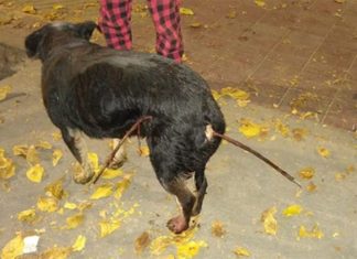 Indignante: atraviesan un hierro en la pierna de un perro