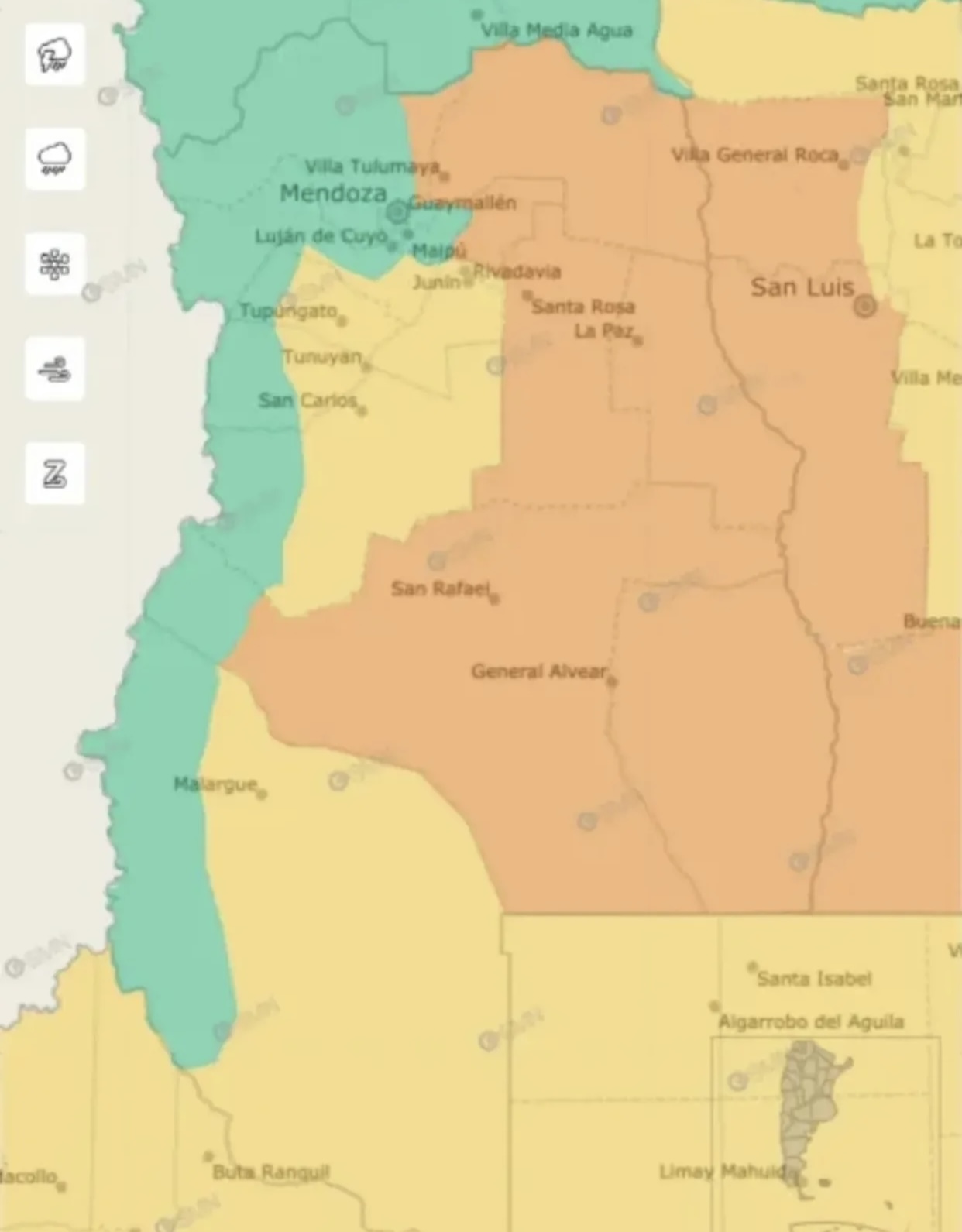 Pero la inestabilidad se extendería hacia la madrugada del jueves, para cuyo período el SMN anticipa "lluvias y tormentas de variada intensidad, algunas localmente fuertes" que también podrán estar acompañados de granizo, actividad eléctrica y ráfagas de hasta 70 km/h y por lo cual ha emitido una alerta de nivel amarillo para esas horas.