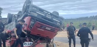Carril Chimbas: Triple choque y vuelco de un camión cerealero