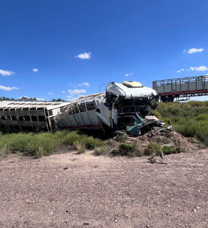 Alrededor de las 15:30 de este jueves, un camión que transportaba ganado volcó sobre Ruta 7, a la altura de Las Catitas, en el departamento de Santa Rosa. El hecho ocurrió tras una colisión en la parte trasera de otro camión que circulaba delante, lo que provocó el vuelco del vehículo cargado con animales.
